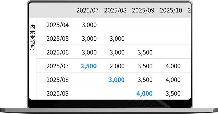 過去の内示と実績の比較が容易になり、より精度の高い予測が可能になります。